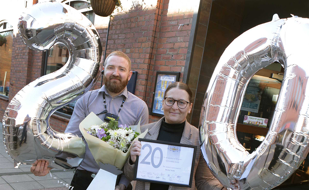Keen footballer Becky has celebrated 20 years with Wetherspoon.